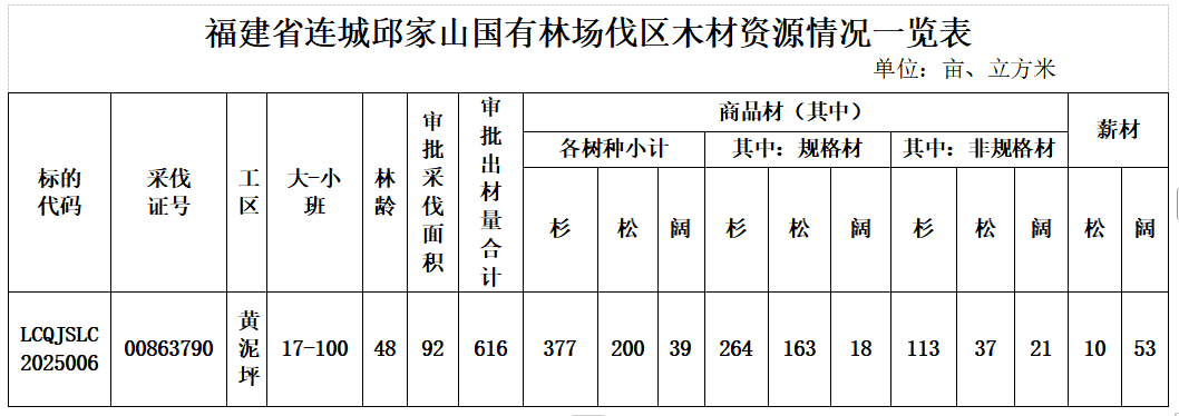 二、项目名称:福建省连城邱家山国有林场黄泥坪管护站木材定产定销项目(LCQJSLC2025006)